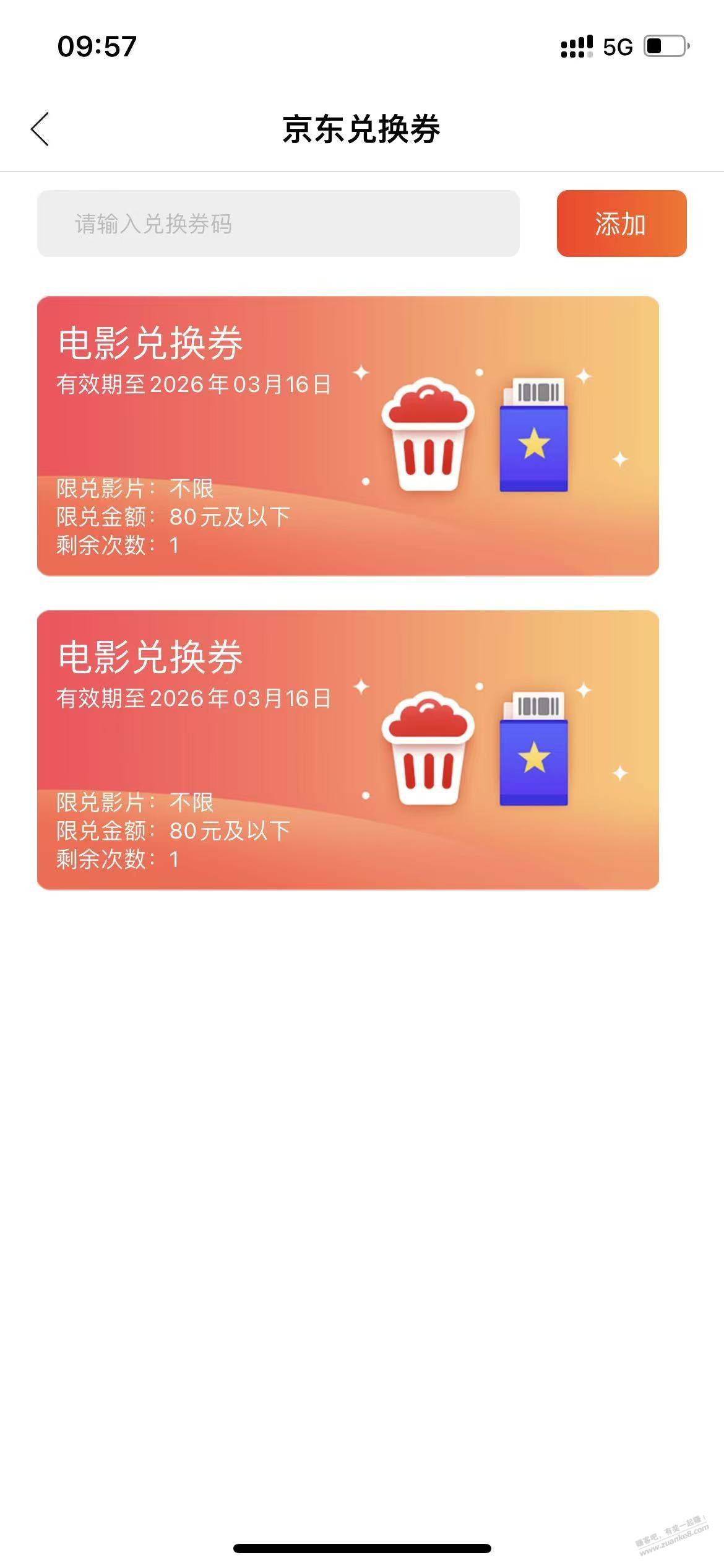 上周买的60超能洗衣液返的2张电影票是80通兑