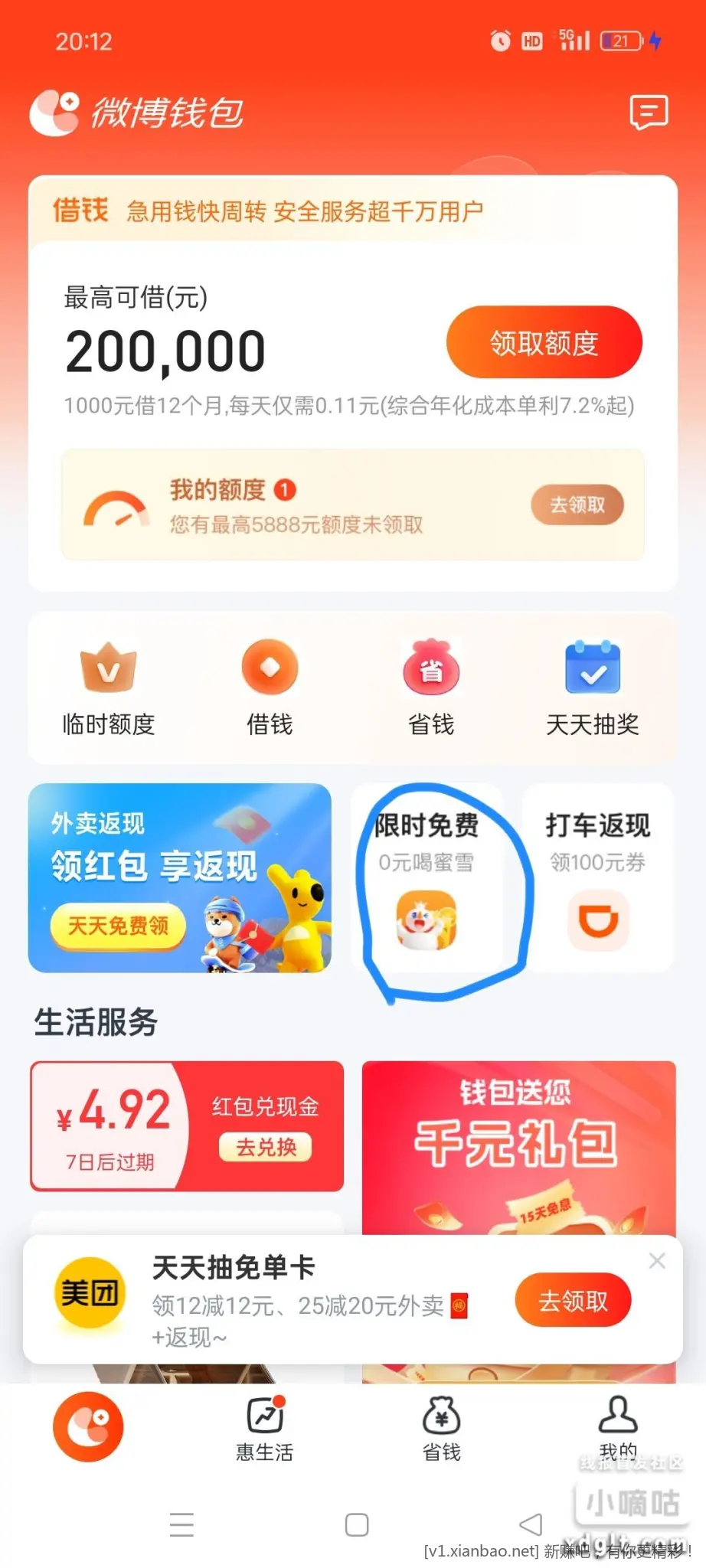 微博钱包活动,得5元蜜雪冰城无门槛代金券