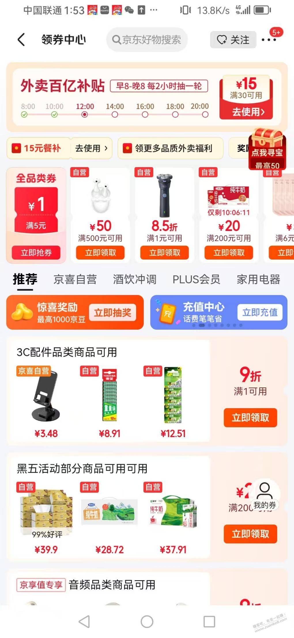 京东领券中心全品5-1或者30-2